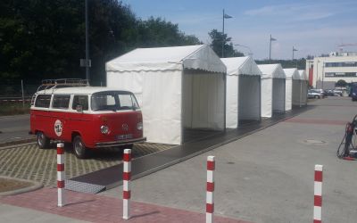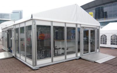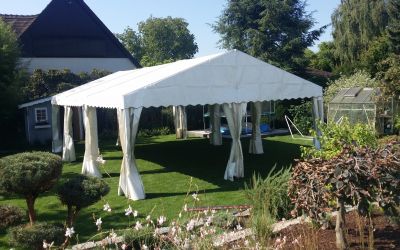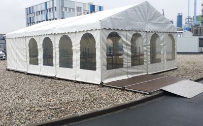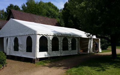Unsere Zelte sind alle mit neutralen weisen Planen und Seitenvorhängen, die auf Wunsch mit Fenstern versehen sind, ausgestattet. Passend für jeden Einsatzzweck u.v.m.
